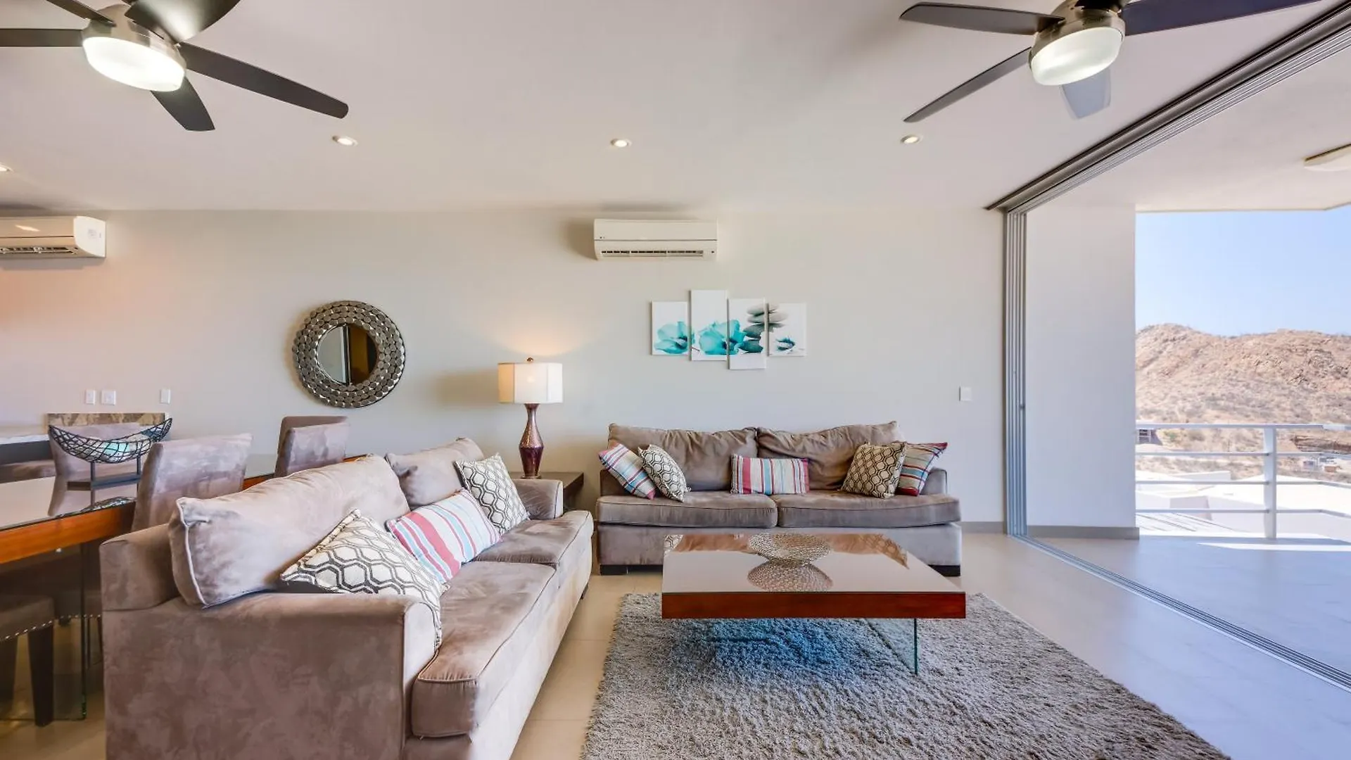 Im Cabo Pedregal Condo Ocean View And 2 Infinity Pools stehen Gästen ein Patio und ein Balkon mit einer Klimaanlage zur Verfügung. Die Unterkunft verfügt über eine getrennte Toilette, die Ihren Komfort erhöhen. Zudem finden Sie im Badezimmer einen Haartrockner, einen Wäschetrockner und Handtücher.